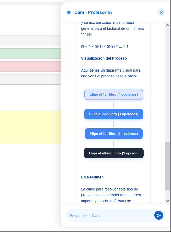 Tras cada una de nuestras 10,000 preguntas, nuestra Inteligencia Artificial te guía con la solución completa para que aprendas de tus errores al instante.